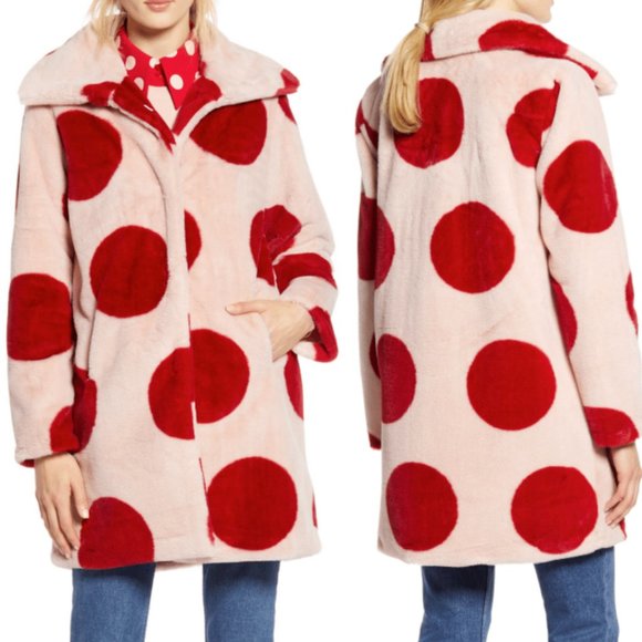 Grey clouds may actually disappear no promises though when you step out in this toasty faux-fur coat with big notice-me dots. Shop and get ideas of how to wear HALOGEN Halogen x Atlantic-Pacific Polka Dot Faux Fur Coat red pink or find similar products for less. Coat also seen hereSunglasses.